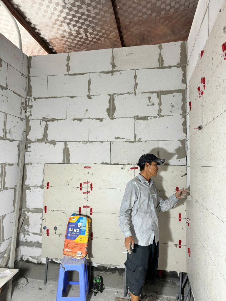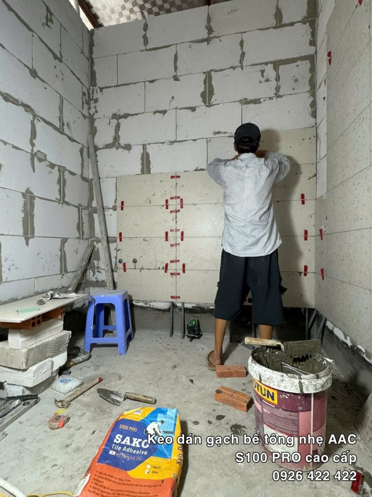 Hình ảnh 1: Tường gạch AAC ốp lát gạch đá 600x300mm bằng keo dán gạch SAKO S100 PRO (25kg/bao)