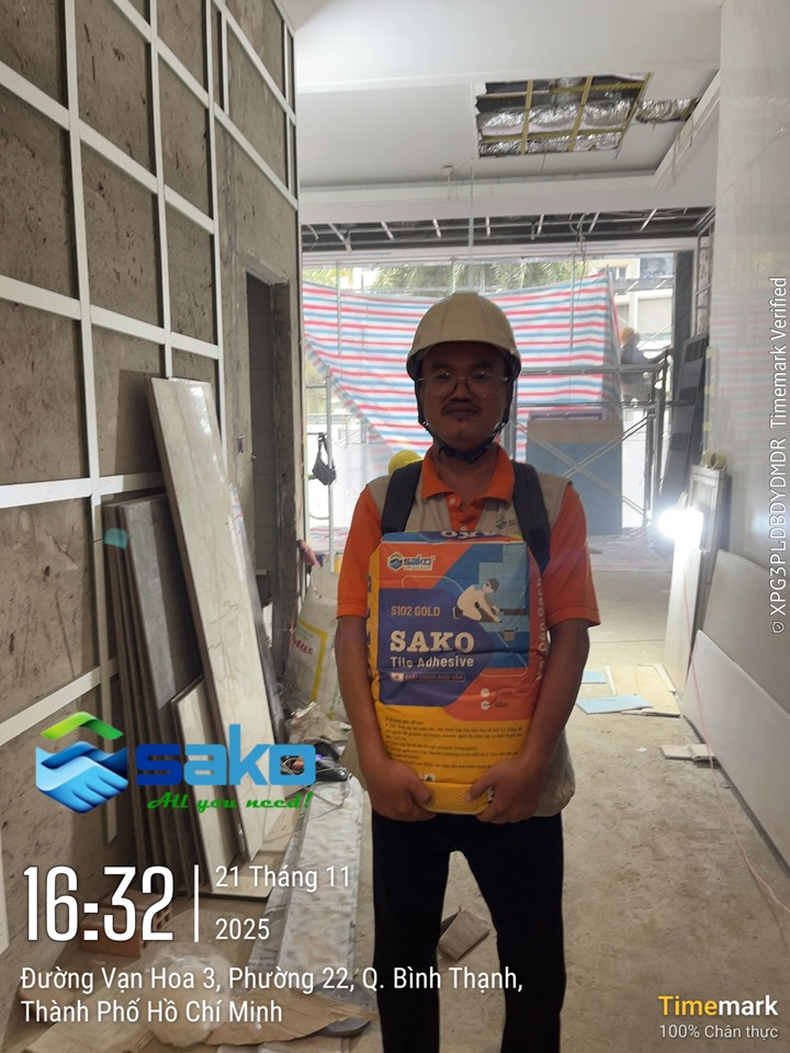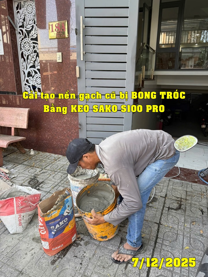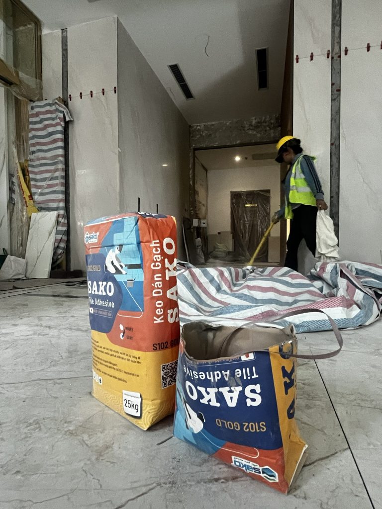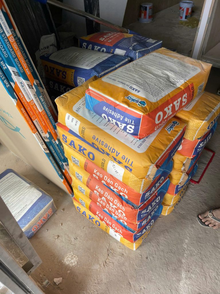 - Cuối năm 2024, Vào T12/2024 lại phải thay thế gạch Lầu 2, Bị bong tróc. Thay toàn bộ gạch mới do gạch đục ra bể vỡ, không sử dụng lại được. Keo SAKO được anh lựa chọn ốp dán gạch.