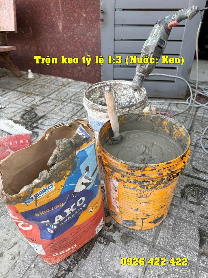 - Cuối năm 2023, Anh Thuận phải cải tạo thay thế 100% nền gạch ở Tầng G và Sân thượng. Do gạch đã bị bể vỡ, và mẫu gạch đã cũ. Nên khi thay thế buộc phải mua hoàn toàn gạch mới. Đồng thời ốp lát lại phải sử dụng Keo dán gạch để dán.